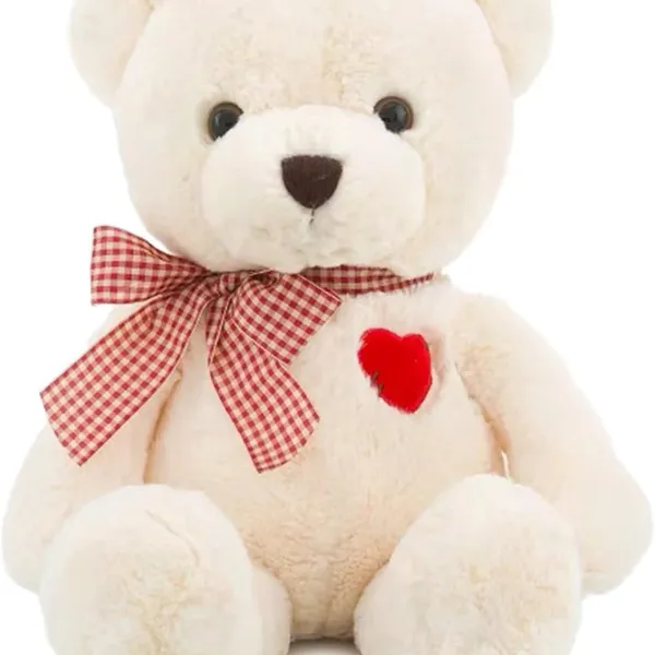 Add a warm and heart felt touch of a snuggly white teddy bear decorated with a heart and bow with your flowers.