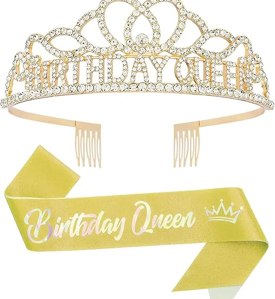 Add some glamour of a golden crown and sash for someone’s special birthday.